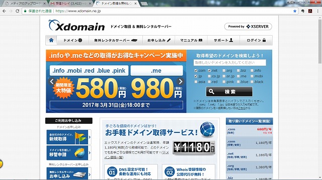 サーバーはこの動画と同じXdomainの無料サーバーを借りて、ワードプレスのサイトを作成しました