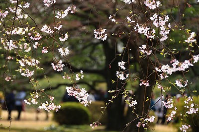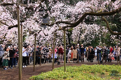 正門を入るとお目当ての枝垂れ櫻があり、沢山の人が写真を撮っている。